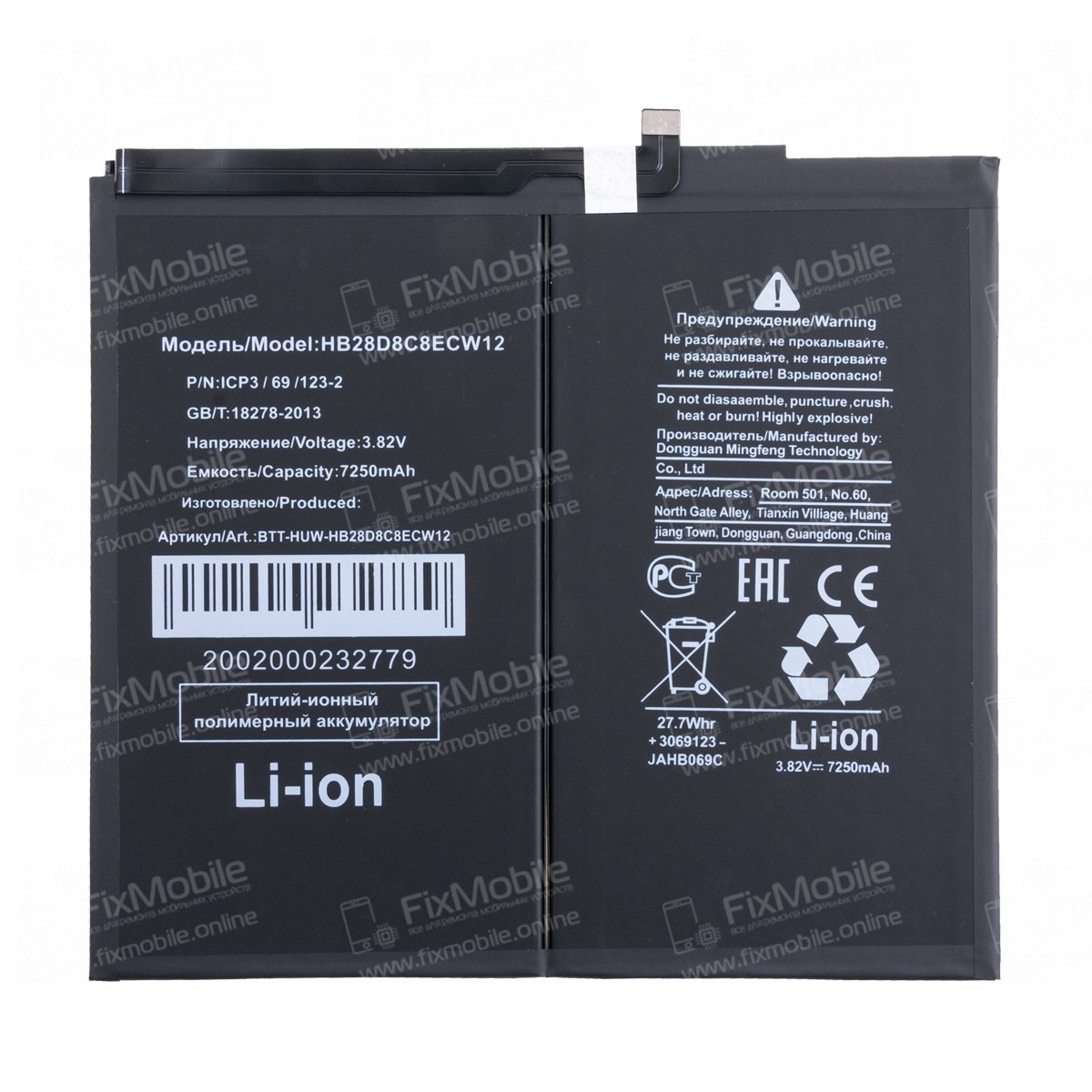 Аккумуляторная батарея для Huawei MatePad 11 Wi-Fi (DBY-W09) HB28D8C8ECW-12