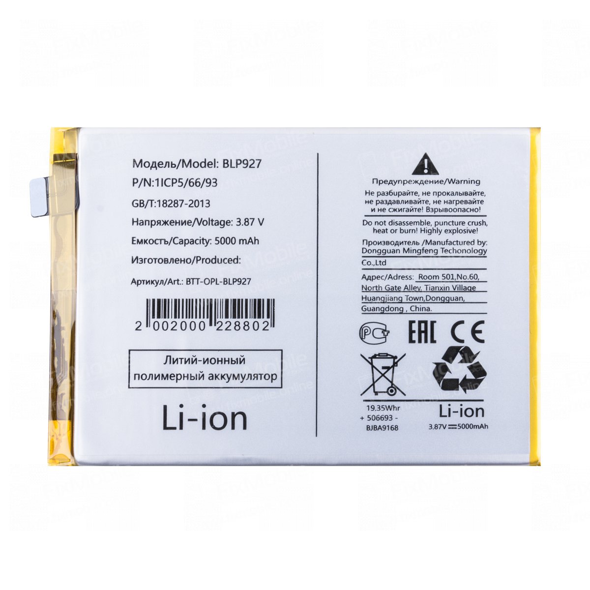 Аккумуляторная батарея для OnePlus Nord CE 2 Lite 5G BLP927